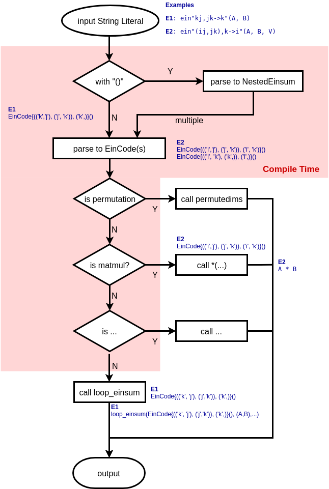 The structure of an einsum evaluation with the string-literal is depicted in the flowchart below: